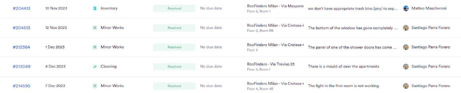 - Intervenciones programadas con contratistas que llegan por email, por portales o incluso de forma inesperada cuando el contratista aparece en el sitio.