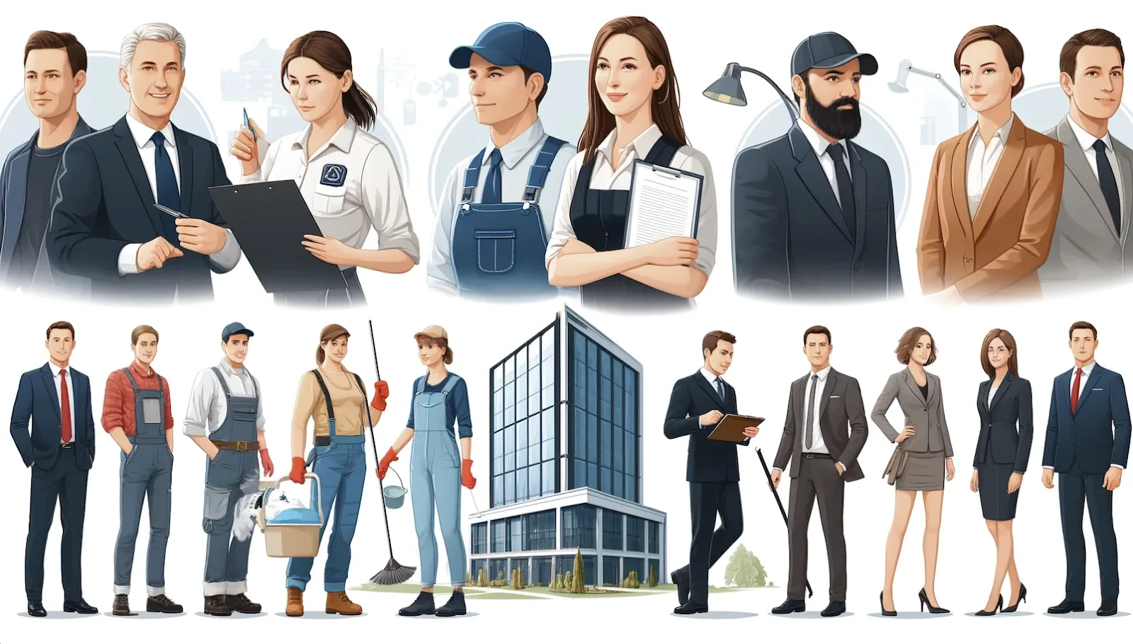- Cleaning services: Daily cleaning, specialized cleaning (windows, carpets), waste management.