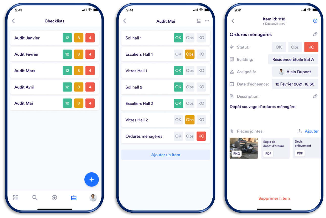 Afin de respecter les normes sécuritaires des ERP ou pour satisfaire les normes de qualité internes des entreprises de gestion, des audits et contrôles périodiques doivent être effectués afin de s’assurer que toutes les installations soient en conformité avec la législation ou que l’état du site est en accord avec la charte qualité interne.