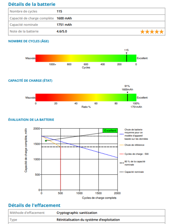 Il est primordial qu'un mobile ayant fait l'objet de reconditionnement et d'une précédente utilisation ait pu faire l'objet d'un effacement des données bas niveau certifiées dans le cadre de la RGPD.
