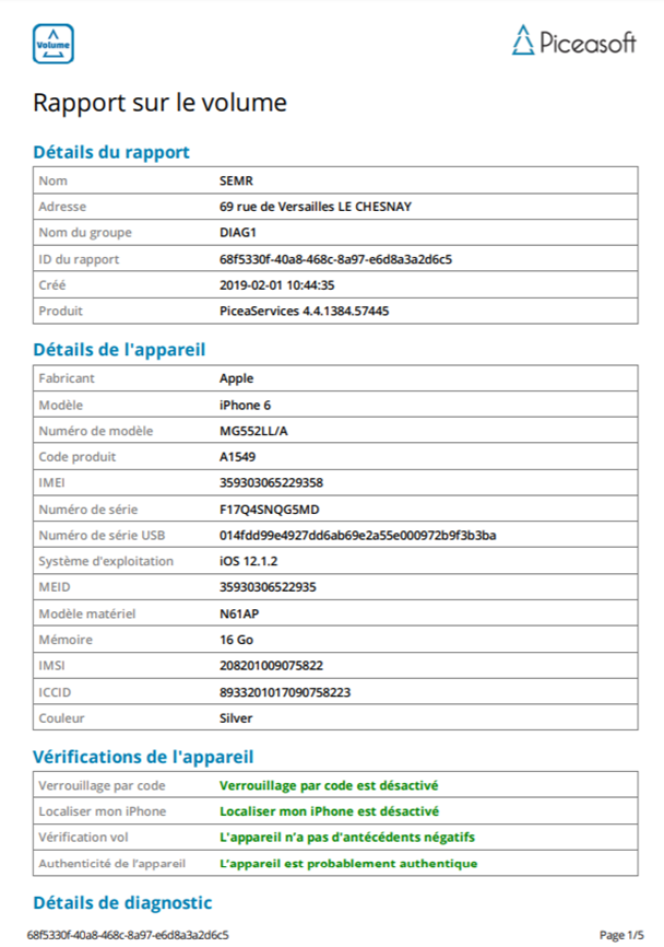 Vous pouvez demander l'état Piceasoft du mobile afin de vous assurer de la valeur d'évaluation de ce dernier.