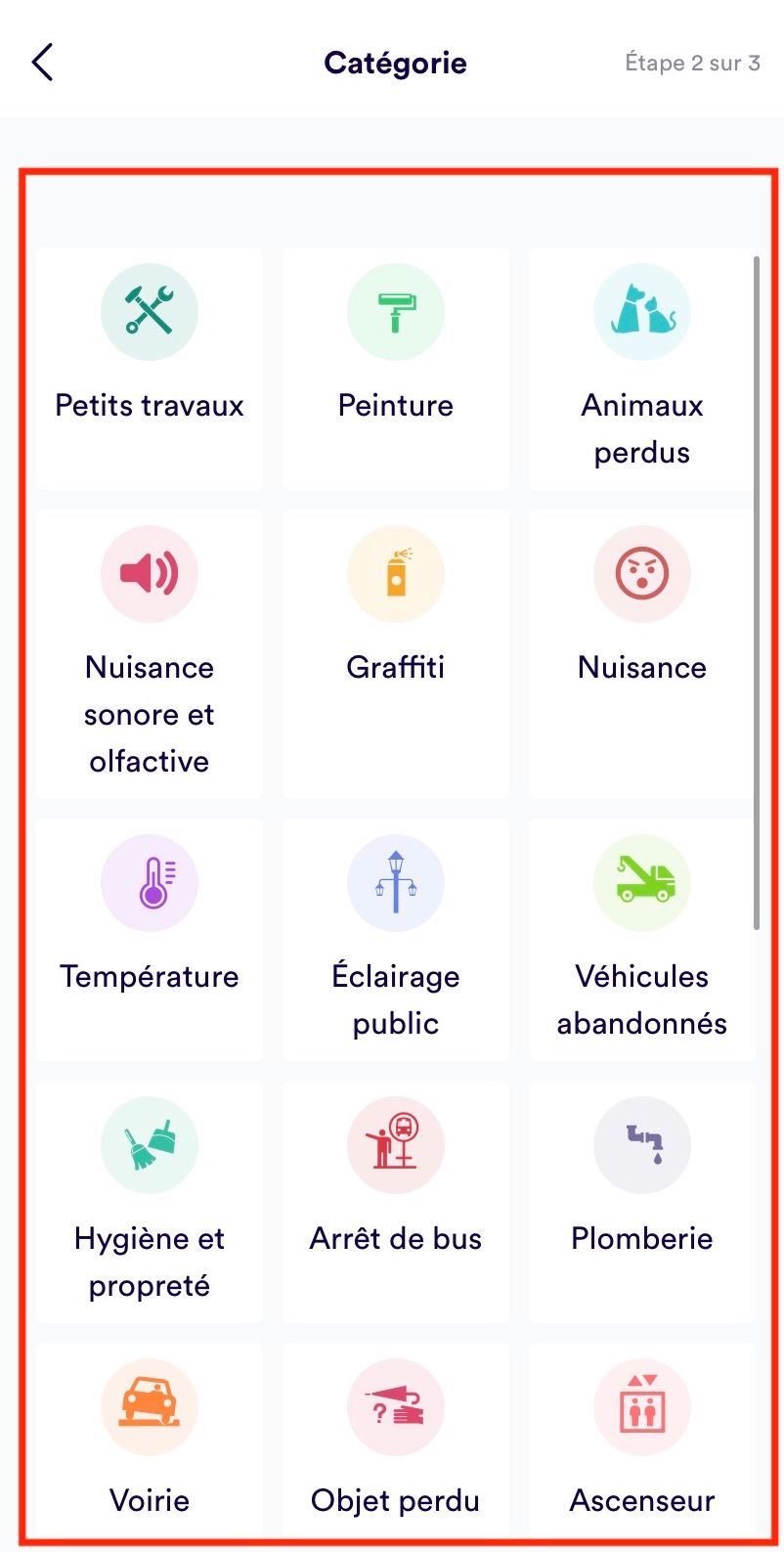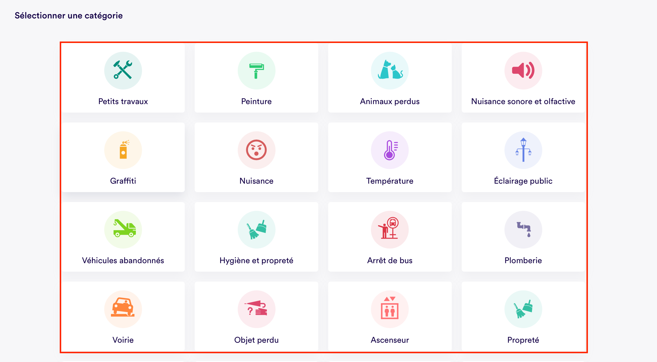 Sélectionnez ensuite la catégorie d’intervention désirée en cliquant sur le logo correspondant.