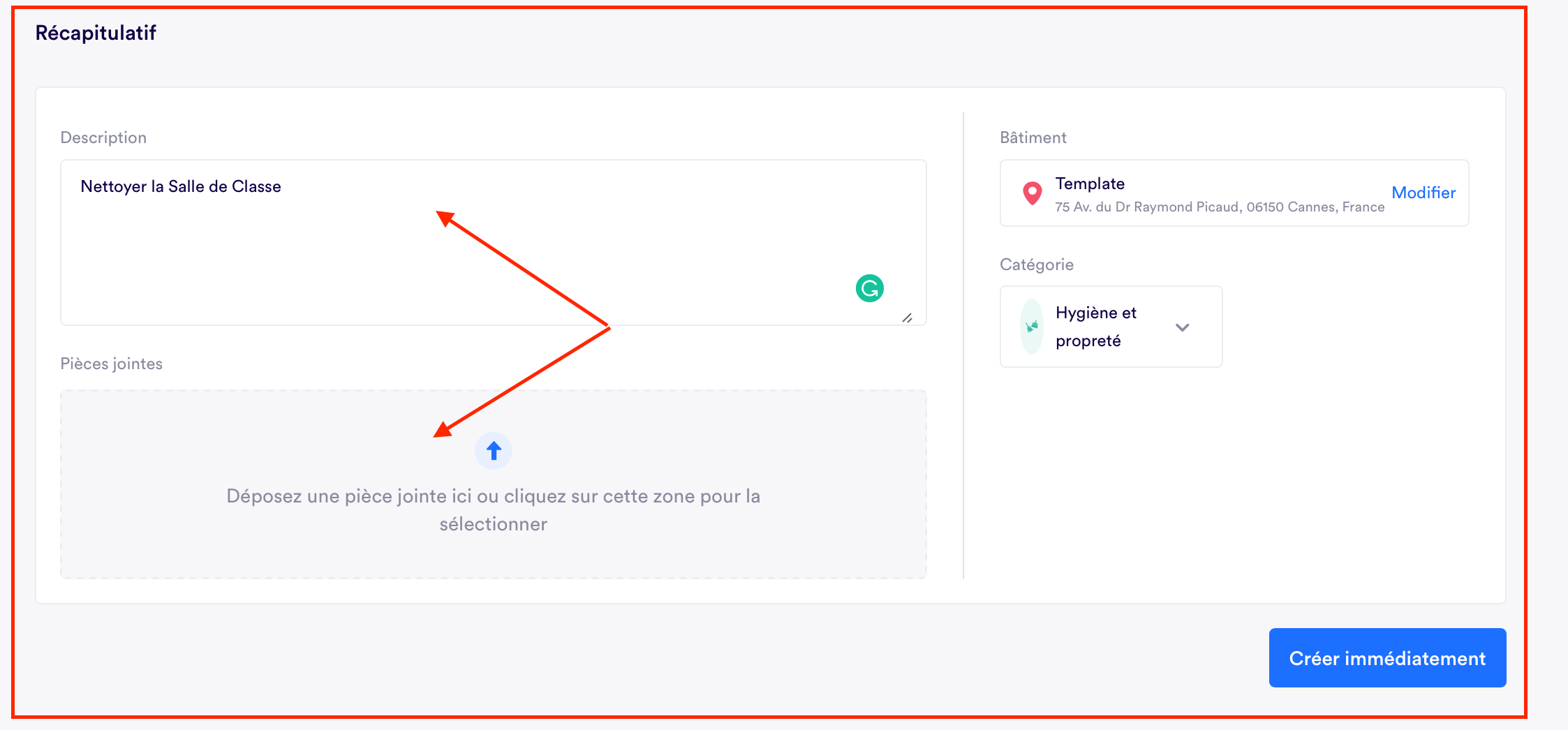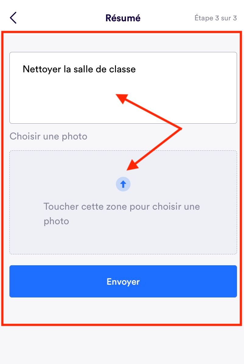 Enfin ajouter une description pour votre demande et éventuellement une photo ou un document.