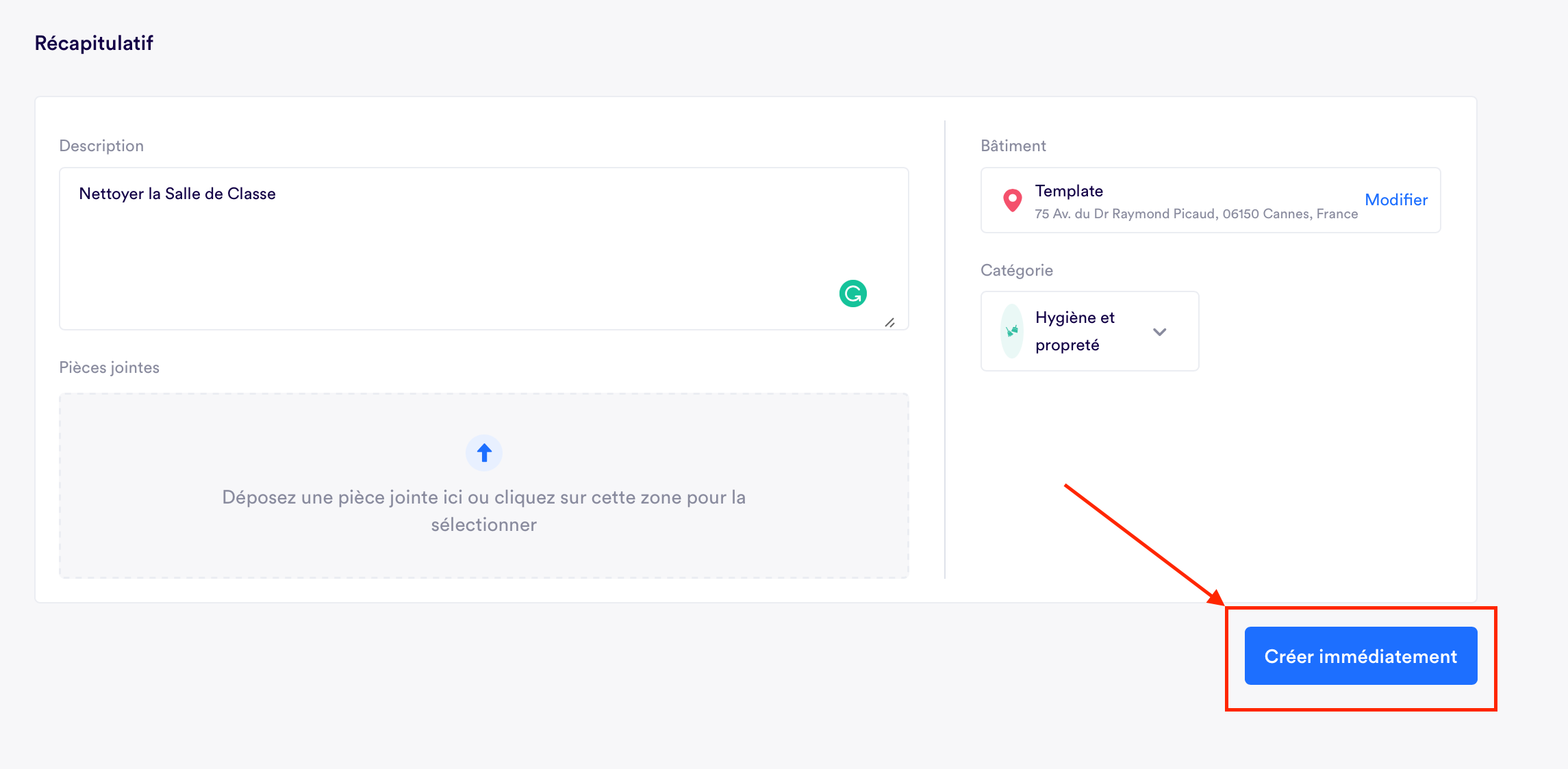 Cliquez sur le bouton “Créer immédiatement” pour envoyer votre demande.